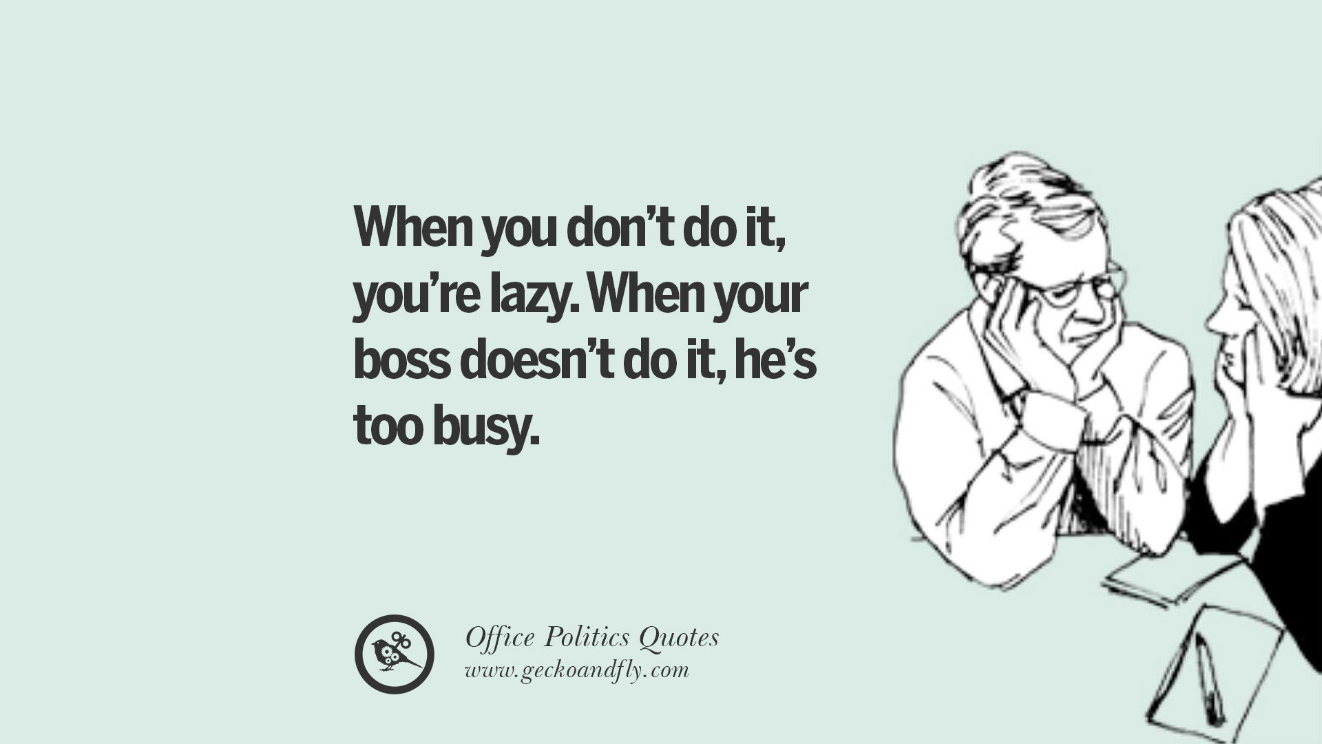 When you don’t do it, you’re lazy. When your boss doesn’t do it, he’s too busy.