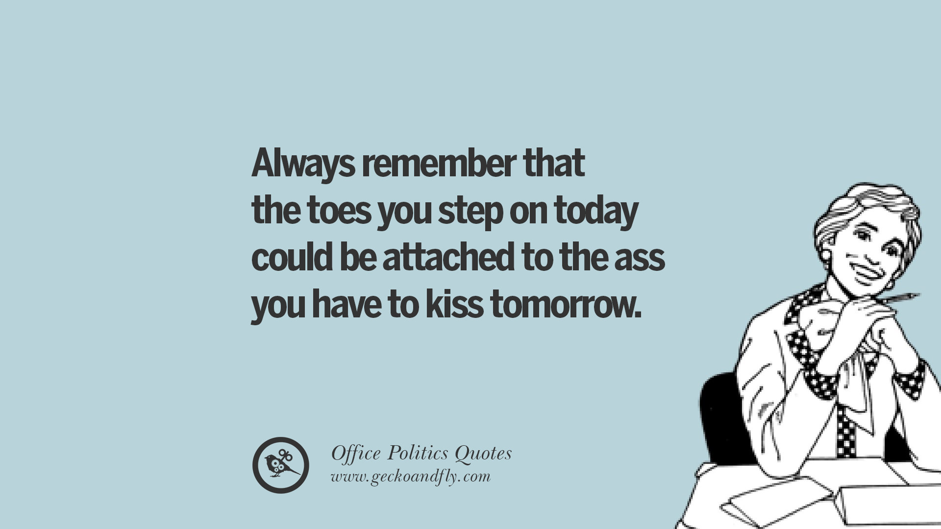 Always remember that the toes you step on today could be attached to the ass you have to kiss tomorrow.