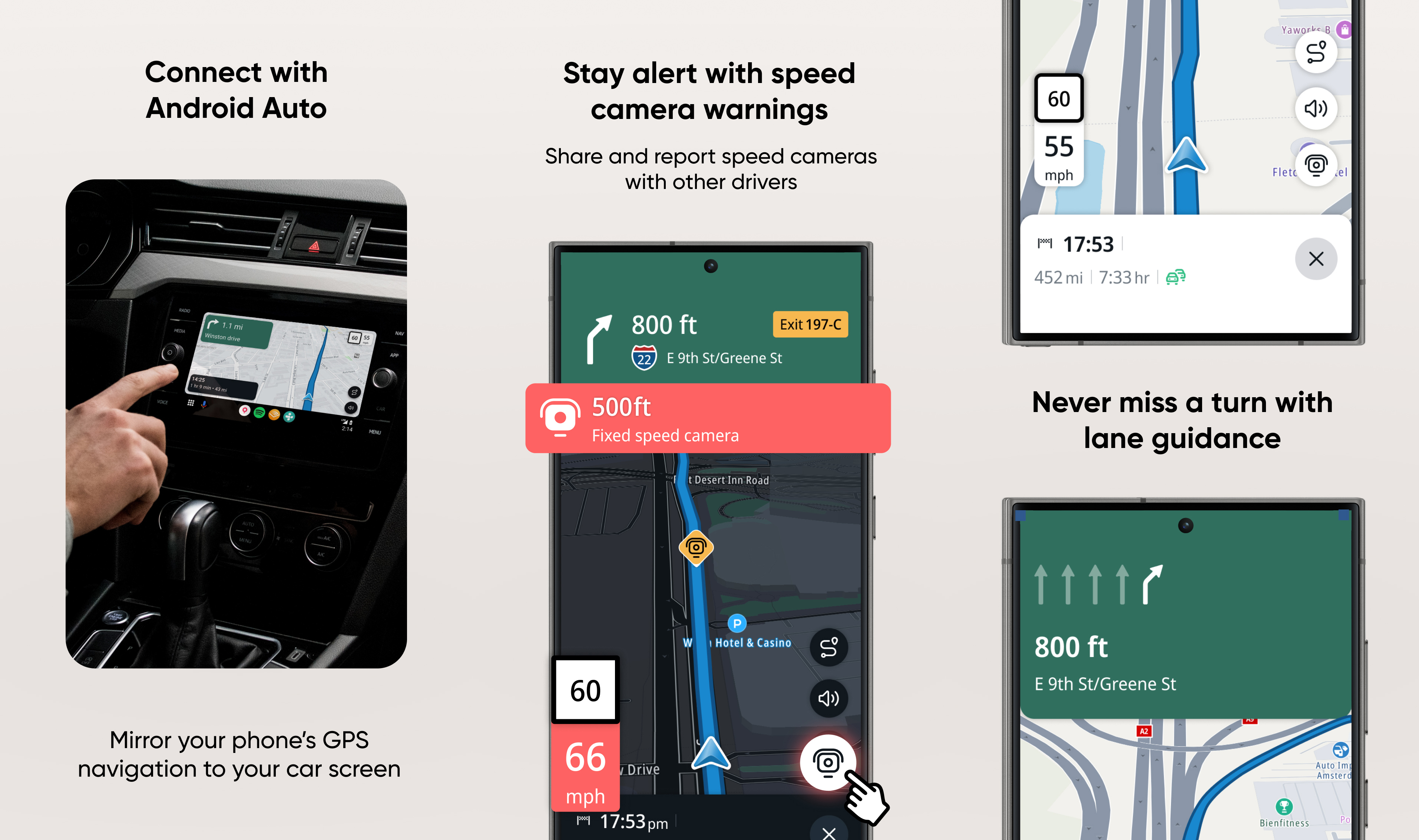 - Receive integrated Speedwatch red-light and speed cameras (as available), including user-generated alerts