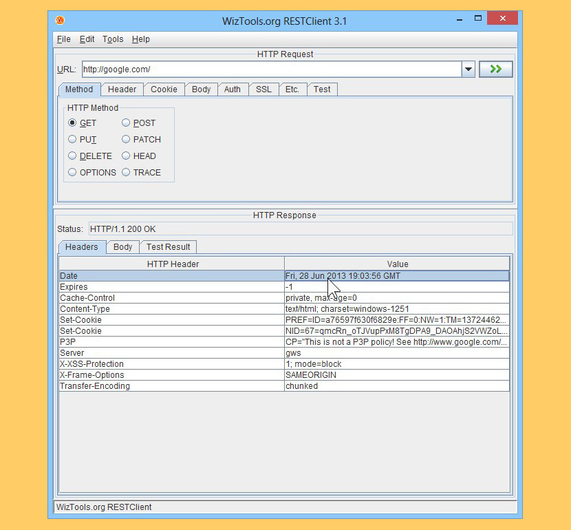 RESTClient can be used to test a variety of HTTP communications and RESTful web services. Friendly GUI, rich functionalities. RESTClient supports all HTTP methods RFC2616 (HTTP/1.1) and RFC2518 (WebDAV). You can construct a custom HTTP request (custom method with resources URI and HTTP request Body) to directly test requests against a server.