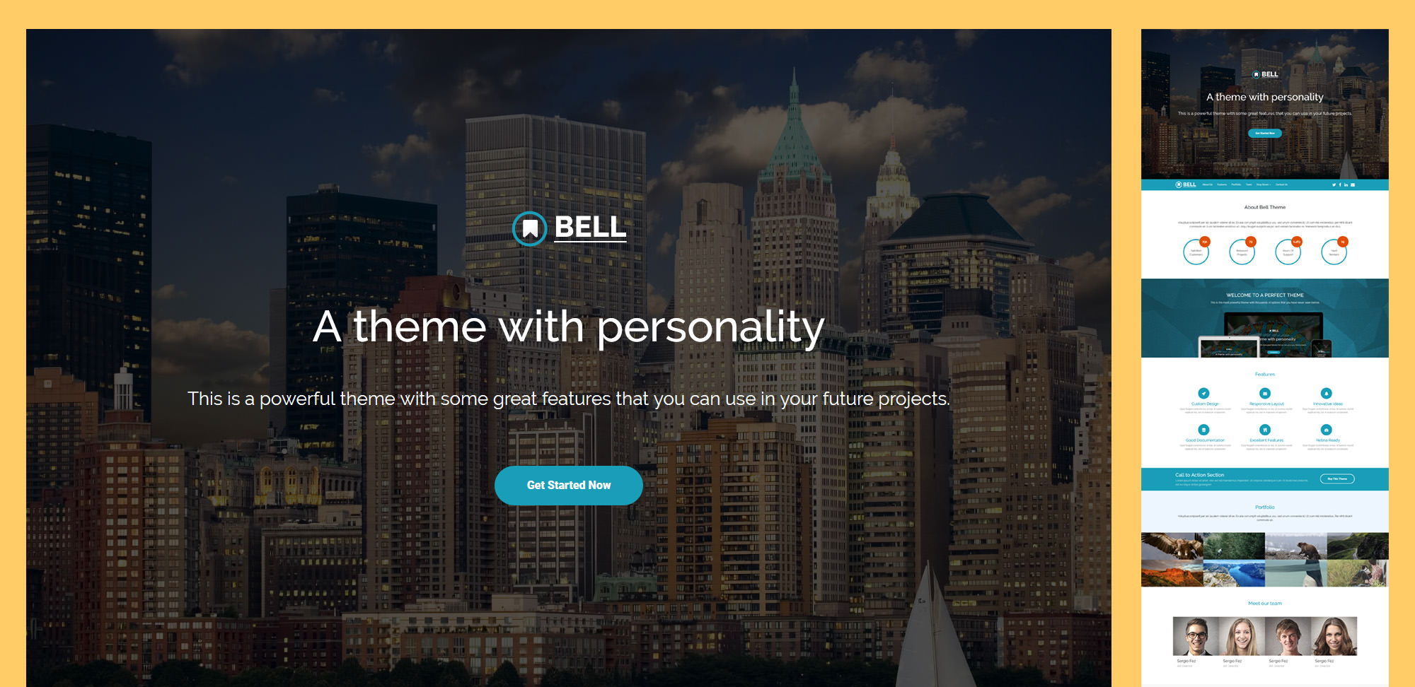 Bell is a single page Bootstrap 4 theme. Bell can be used for multipurpose websites including Agency, Startup, Business, Factory, Real Estate, Construction, Finance, Consulting, Cleaning Service or any type of business website. Just change your Text, Image and Colors and get your website. Everything is already made for you!