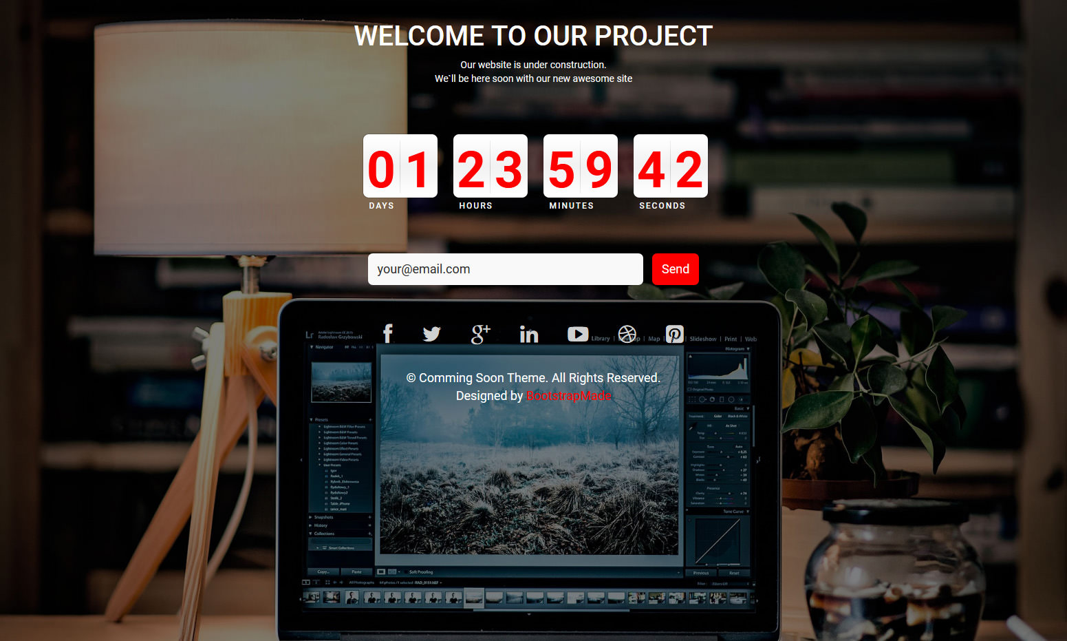 ComingSoon is a simple HTML Bootstrap template for free. This theme is built with the responsive Bootstrap 3.3 framework. ComingSoon is an easy way to show your clients that your site is under construction. This template is suitable for corporate, professional and multipurpose.