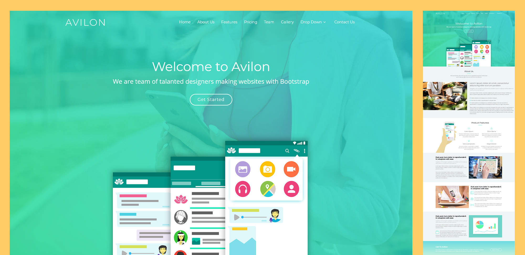 Avilon is clean, elegant and modern landing page template for Bootstrap. This template can be used to present and promote any product like mobile app, desktop app, saas applications, digital products, software or any product that needs a single page presentation on the web. Avilon works perfectly on all smart devices: smart phones, tablets and desktops.