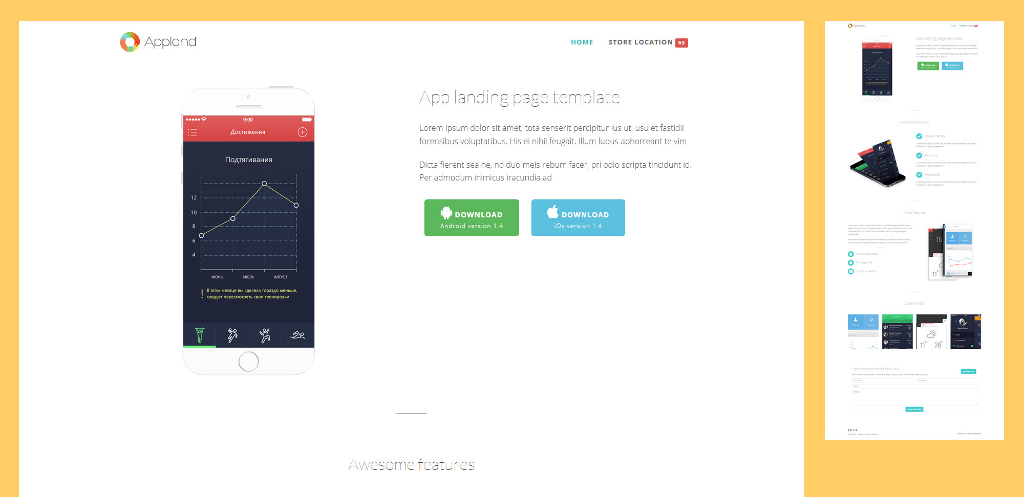 Appland is a free landing page template that is suitable to build app mobile websites. This template is built with responsive Bootstrap 3.2 with plain white, clean and minimal design. Appland also comes with the latest font awesome icons with custom variations, wow animation and nivo lightbox.