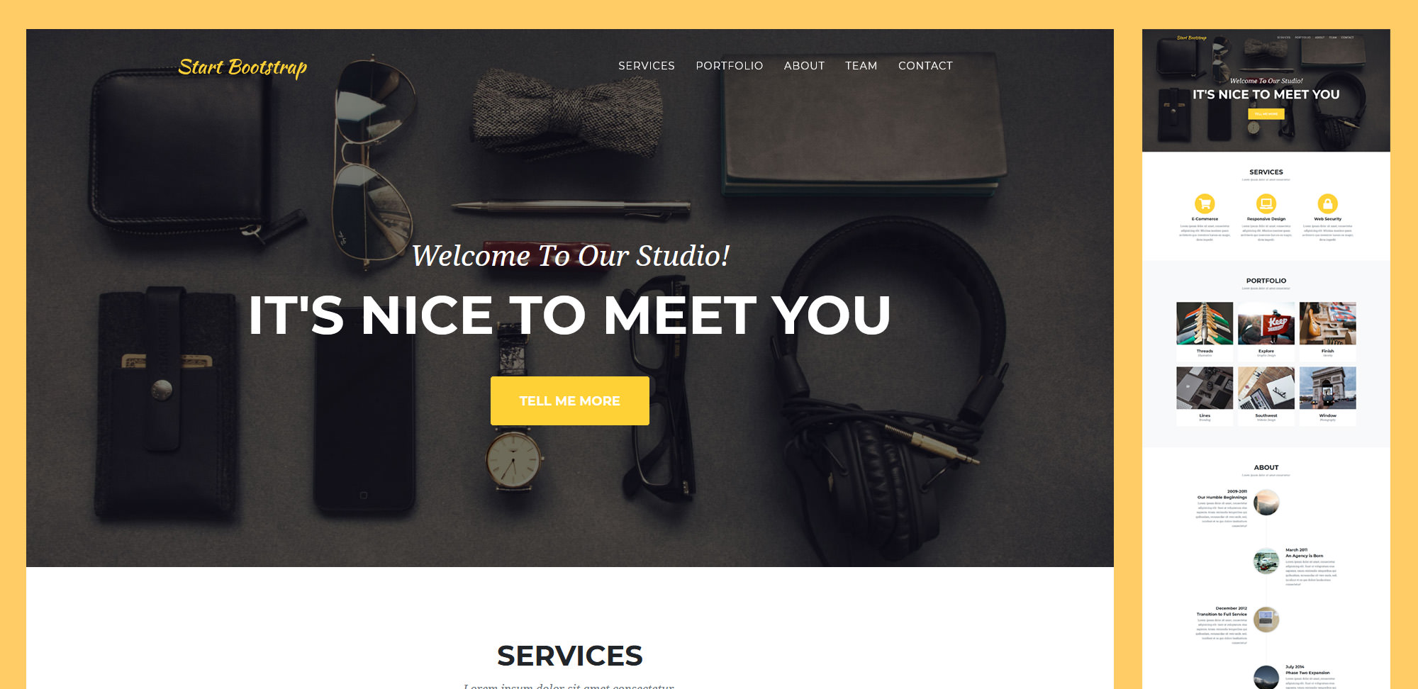Agency is a stylish, one page Bootstrap theme for agencies and small businesses. The design of Agency is based off of the Golden PSD Theme by Mathavan Jaya. You can download the PSD version of this theme at FreebiesXpress.