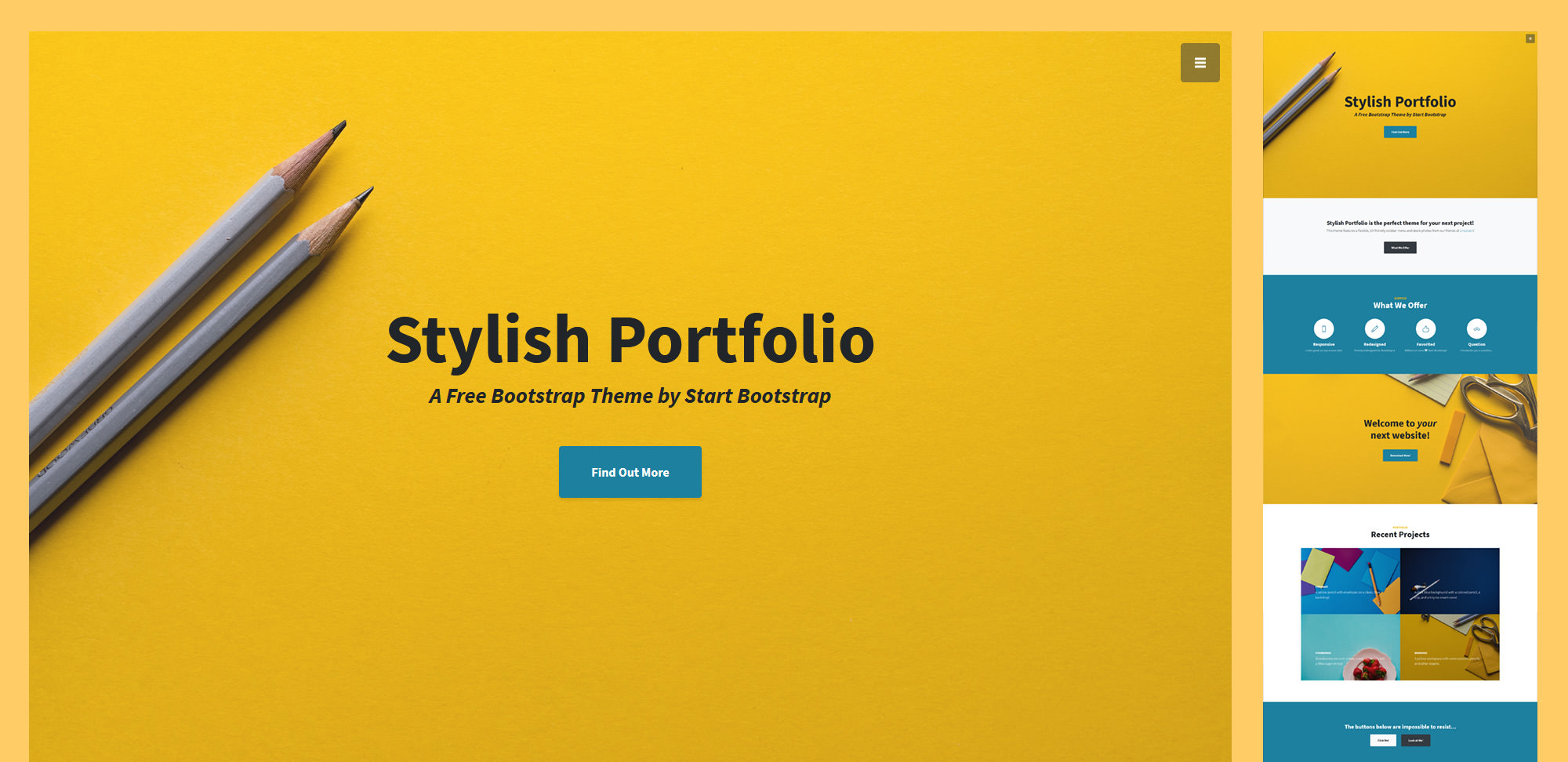 Stylish Portfolio is a one page Bootstrap portfolio theme with off canvas navigation and smooth scrolling through content sections.
