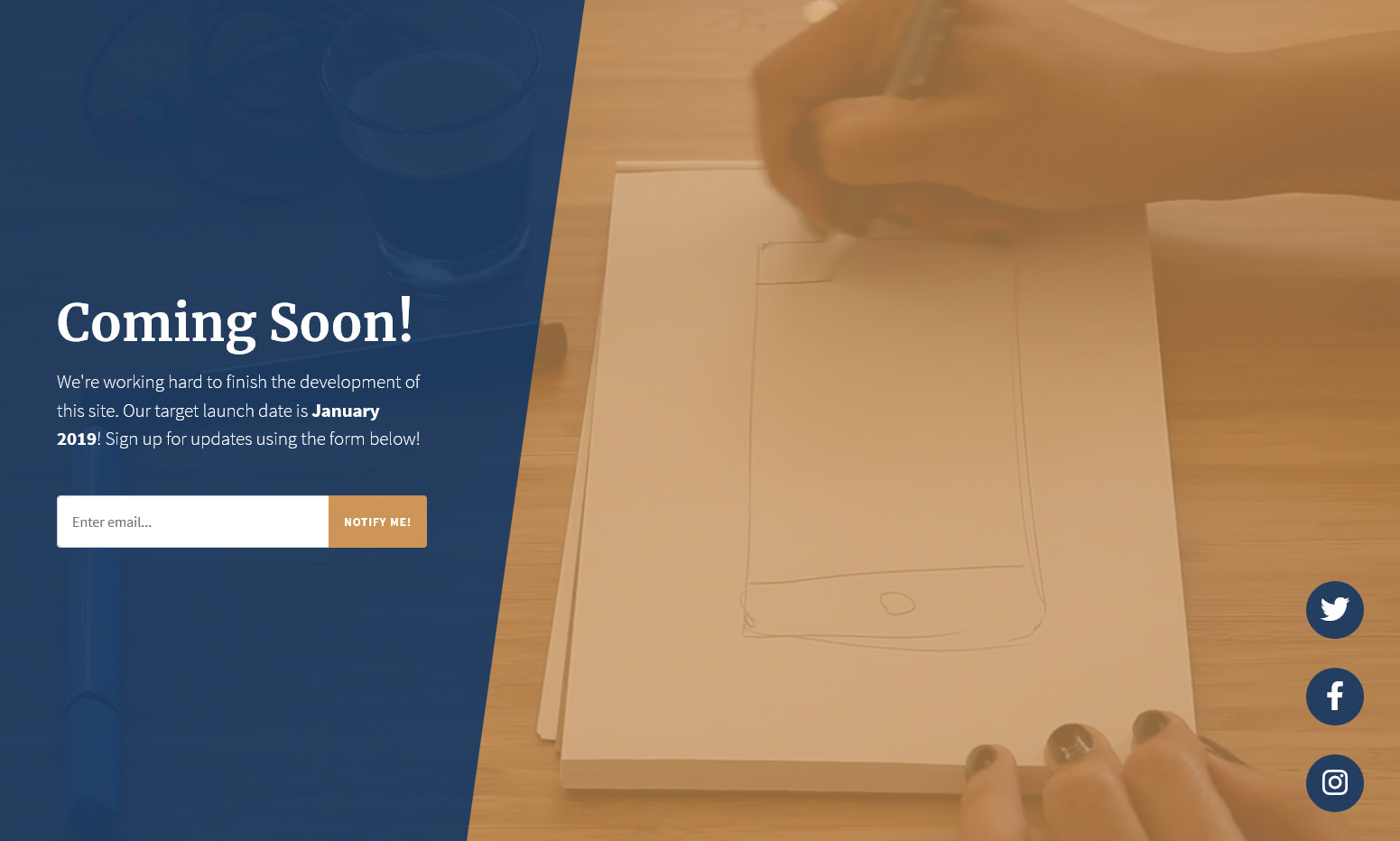 Coming Soon is a Bootstrap 4 coming soon theme perfect to act as your landing page for a project that is under construction! It features a video background image with a newsletter signup form!