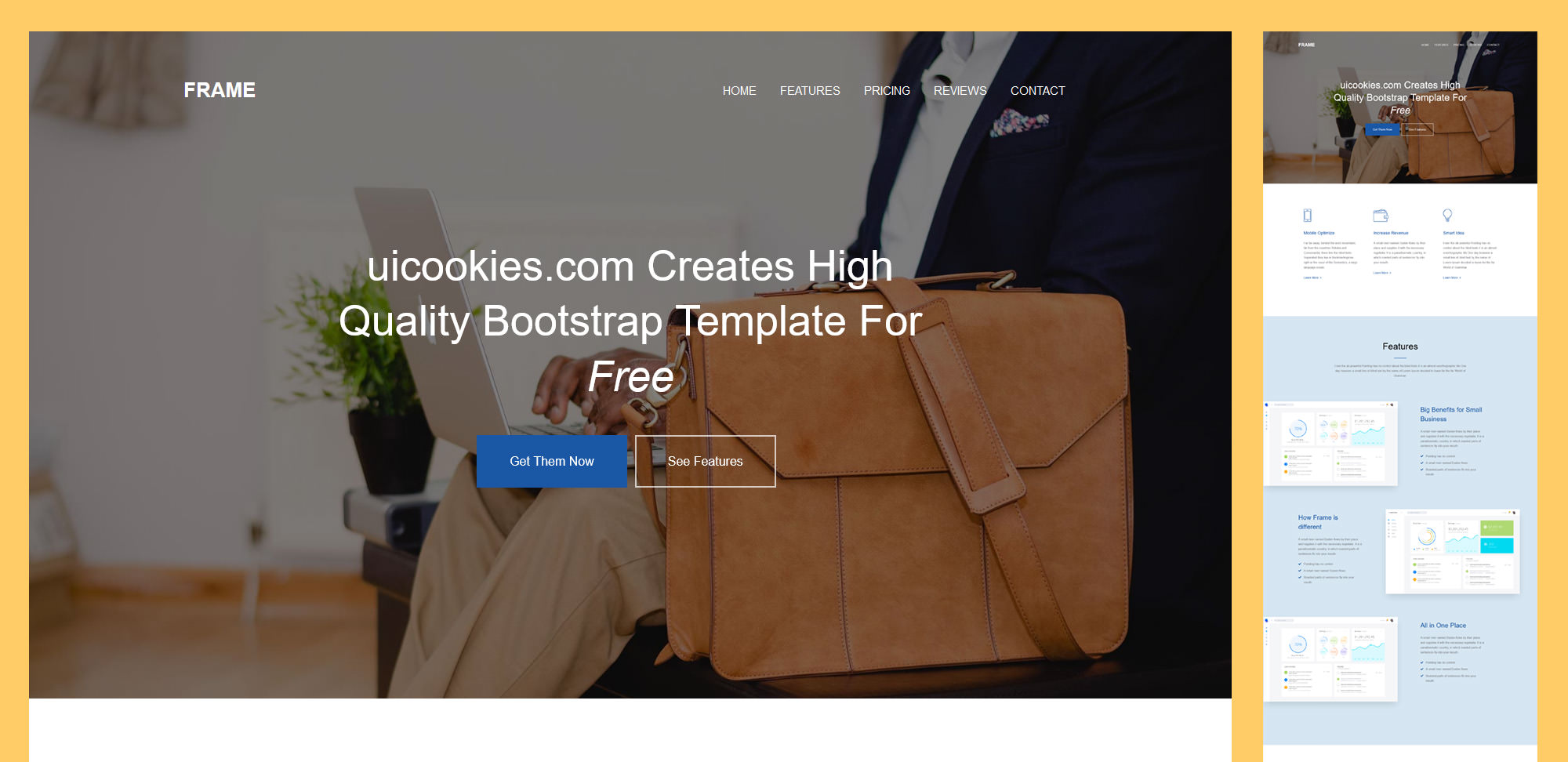 Frame is a free one-page HTML5 website template using bootstrap. It’s a multipurpose template suitable for business startups or landing page for any business. It has a features section, parallax, pricing, reviews and contact with a beautiful and awesome design.