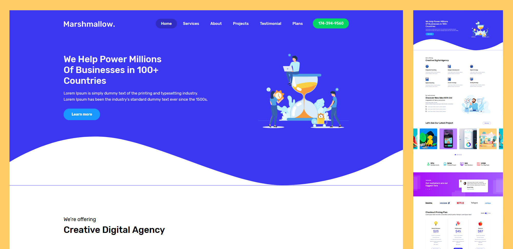 Marshmallow is a one-page landing page designed for one job alone… impress you! Featuring an attractive clean design, Marshmallow is an ideal one page website for promoting your new start-up. Wotcha waiting for? Download for free and go crazy!