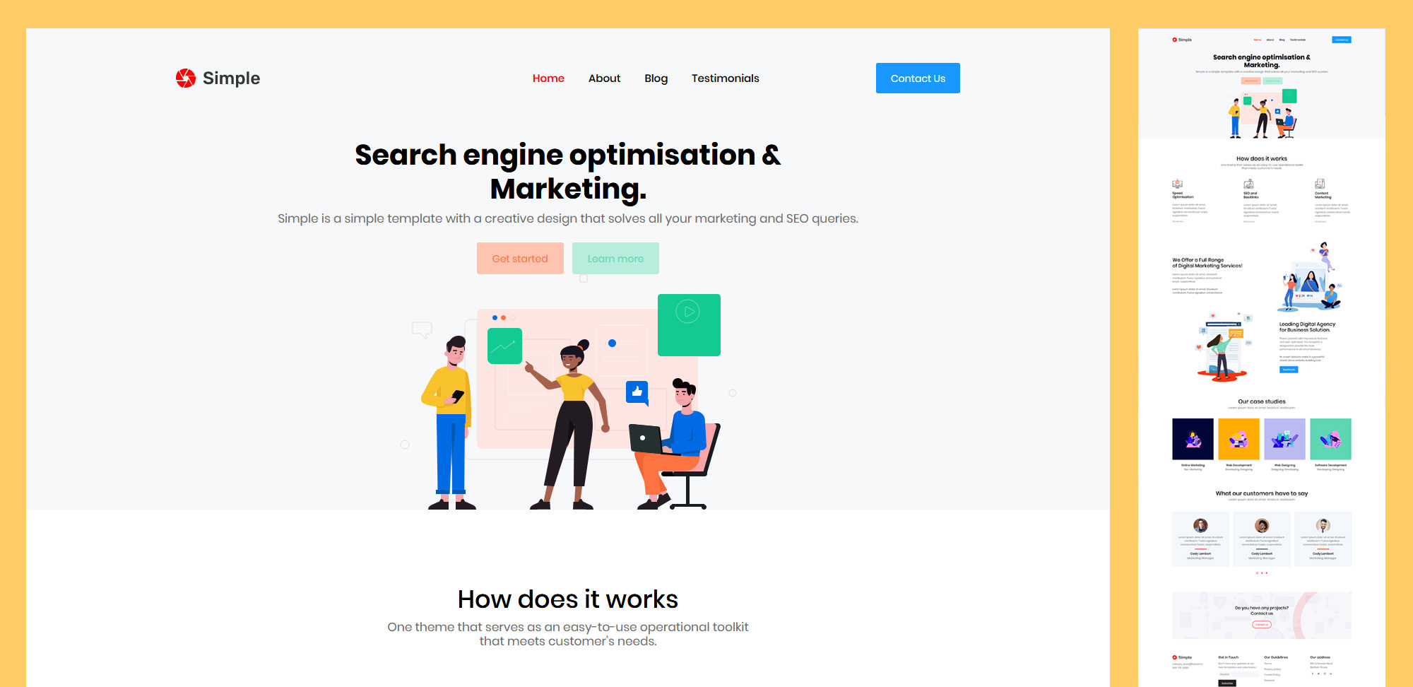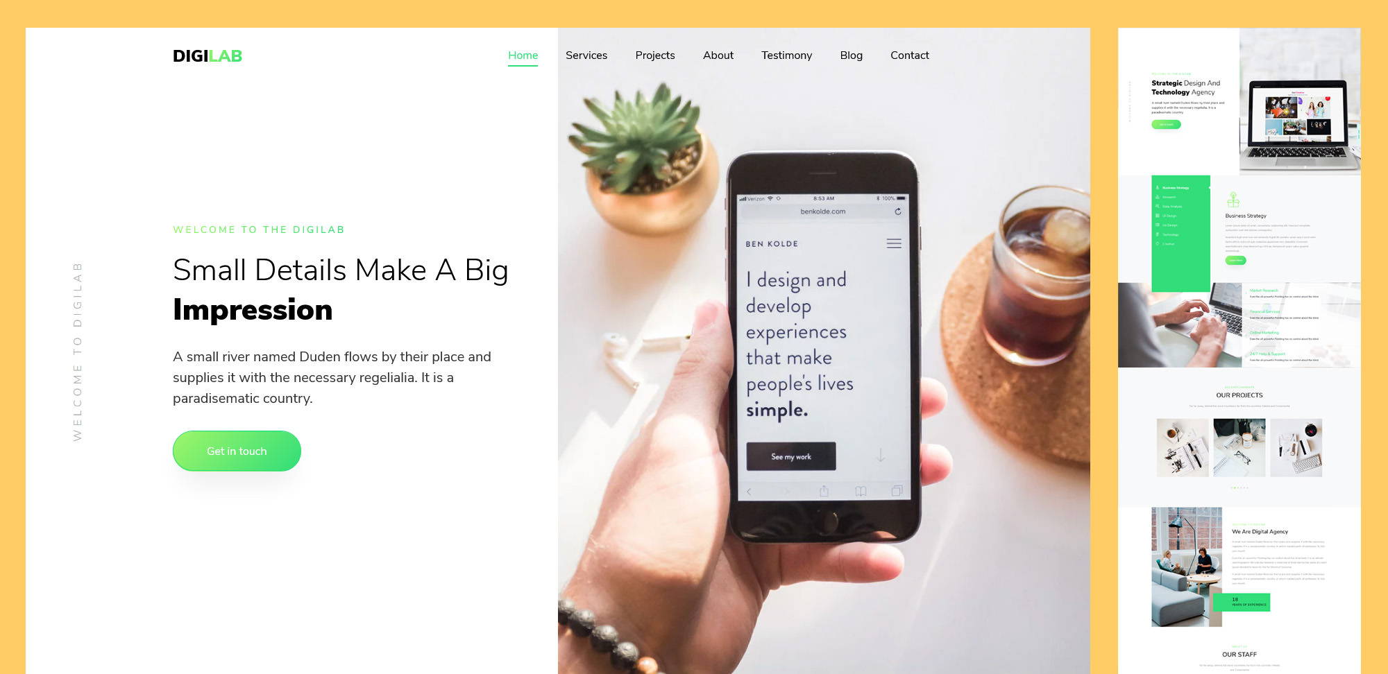 Digilab is a modern, responsive and Bootstrap Framework based free one-page agency website template. It welcomes all your guests with a stunning split-screen slider that you can use to push your services further. Additionally, encourage them to take action with call-to-action buttons and score new deals regularly. With Digilab, you will create a strong first impression that will help you win over even more clients.