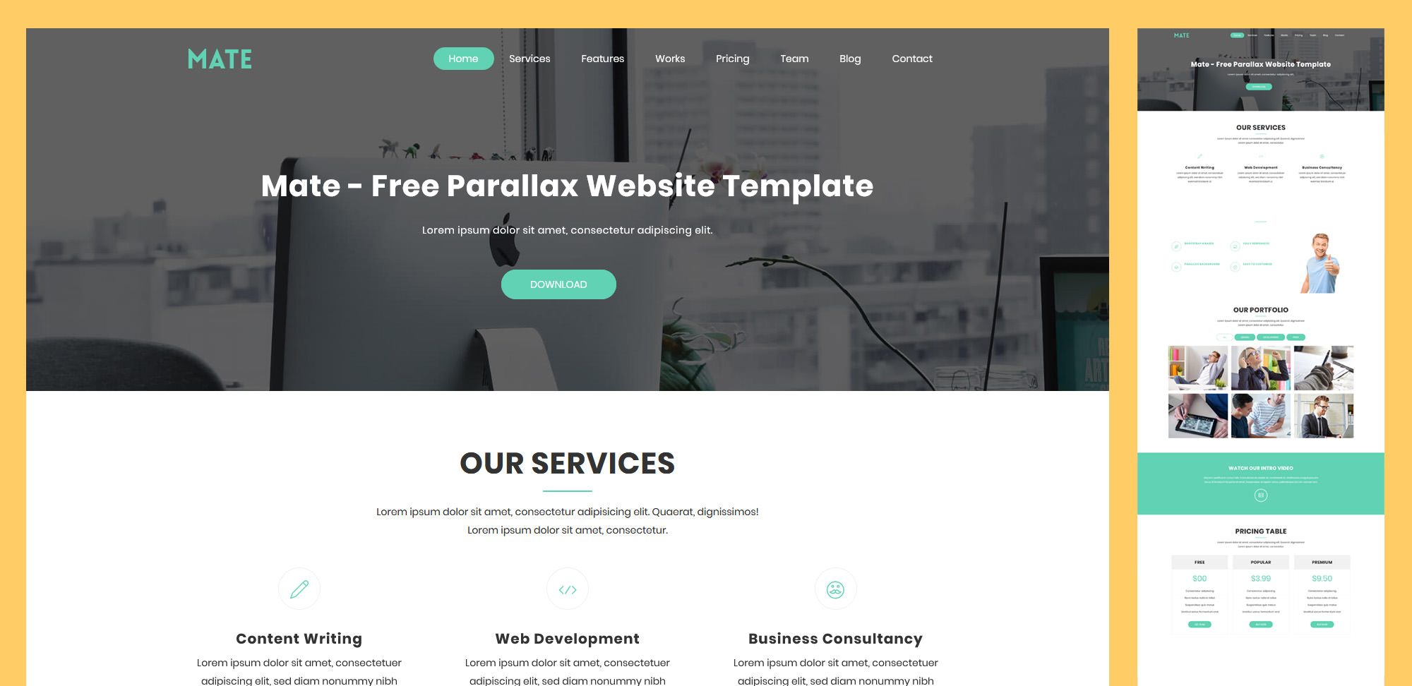 Mate is Free Parallax Website Template based on Bootstrap 4, it is specially crafted for – agency, business, service and startup websites. Mate is constructed with all modern and futuristic technologies like HTML5 and CSS3.