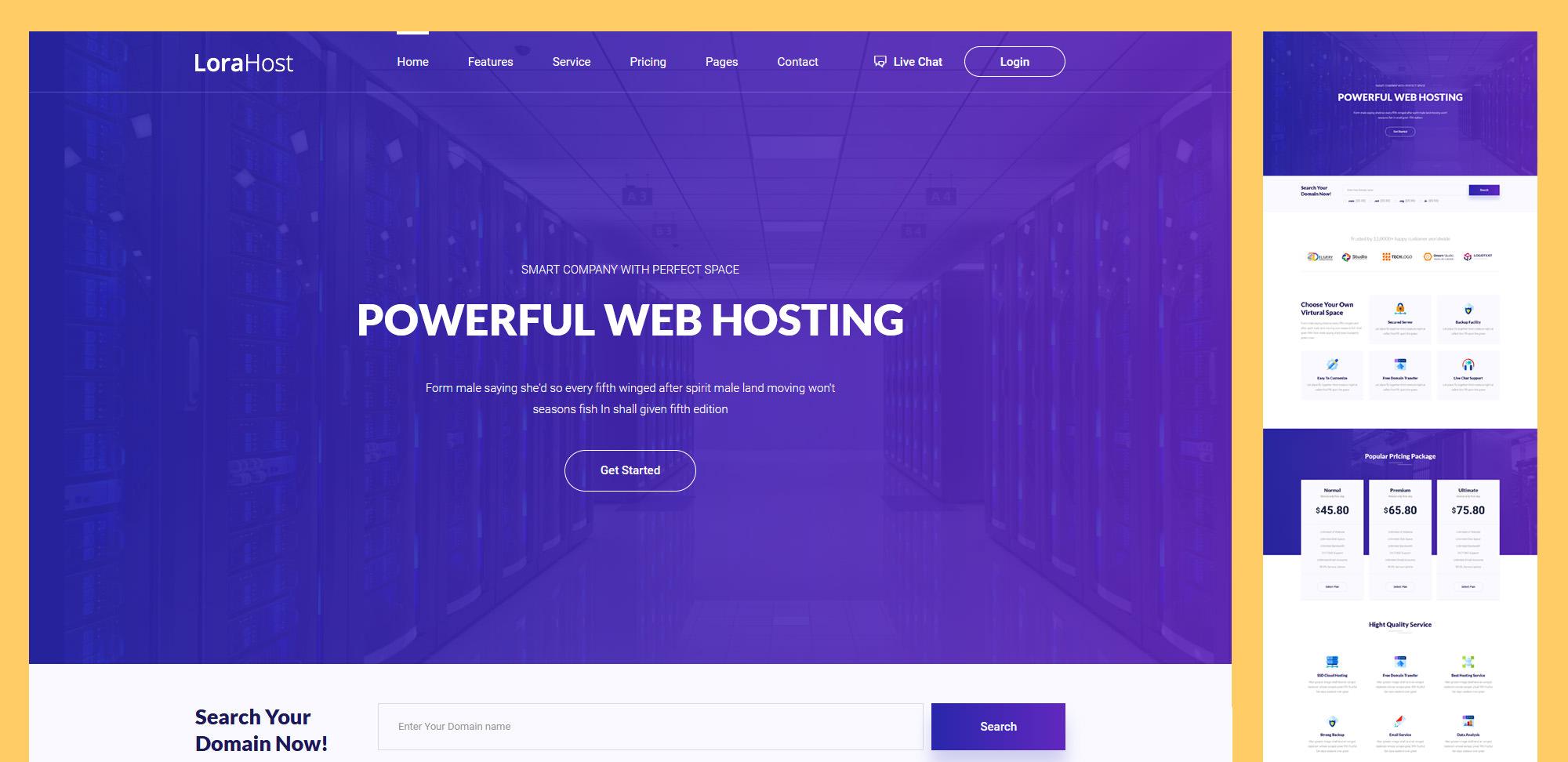 With Lorahost, a free hosting company website template, you can create a powerful online presence for your business. Pretty much any web hosting and domain registrar firm can utilize the amazingness Lorahost brings to the table. Bear in mind, Lorahost rocks a one-page website layout which creates a fantastic atmosphere, covering all your services set apart by just a few scrolls.