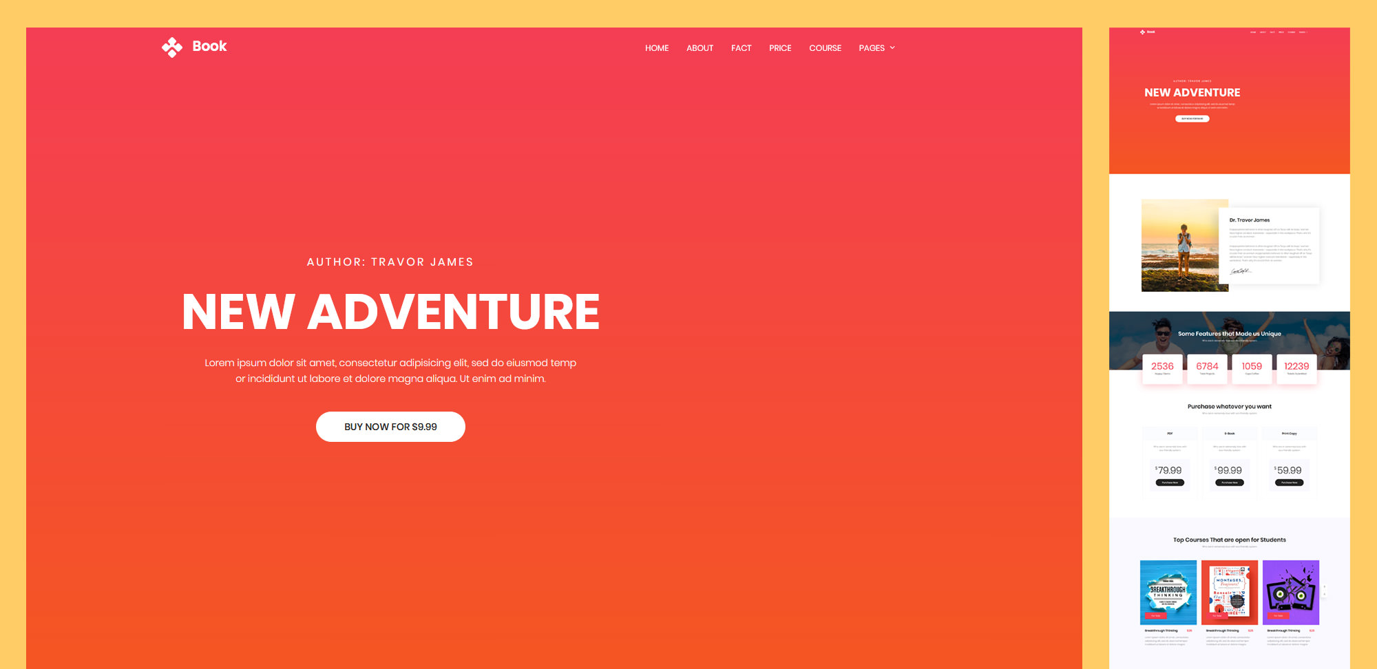 Are you in the process of finalizing your first ever book and would like to make it public in style? You probably thought about it otherwise you would not be checking out this stunning free book landing page website template. You came to the right place to complete the big announcement with Book template and leave everyone in amazement. Not only amazement but encourage them to buy your book either in physical or digital form.