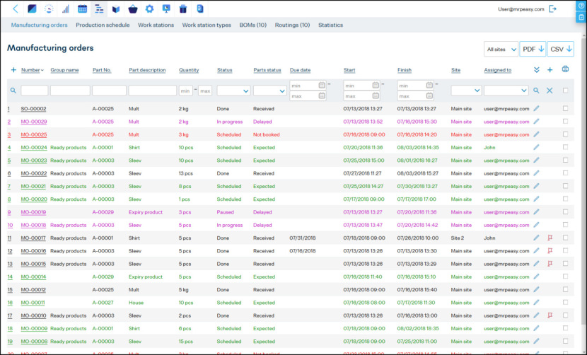 - Production Planning – Benefit from accurate automatic planning and a realistic production schedule. Reschedule dynamically by dragging & dropping manufacturing orders and operations in the calendar or Gantt chart.