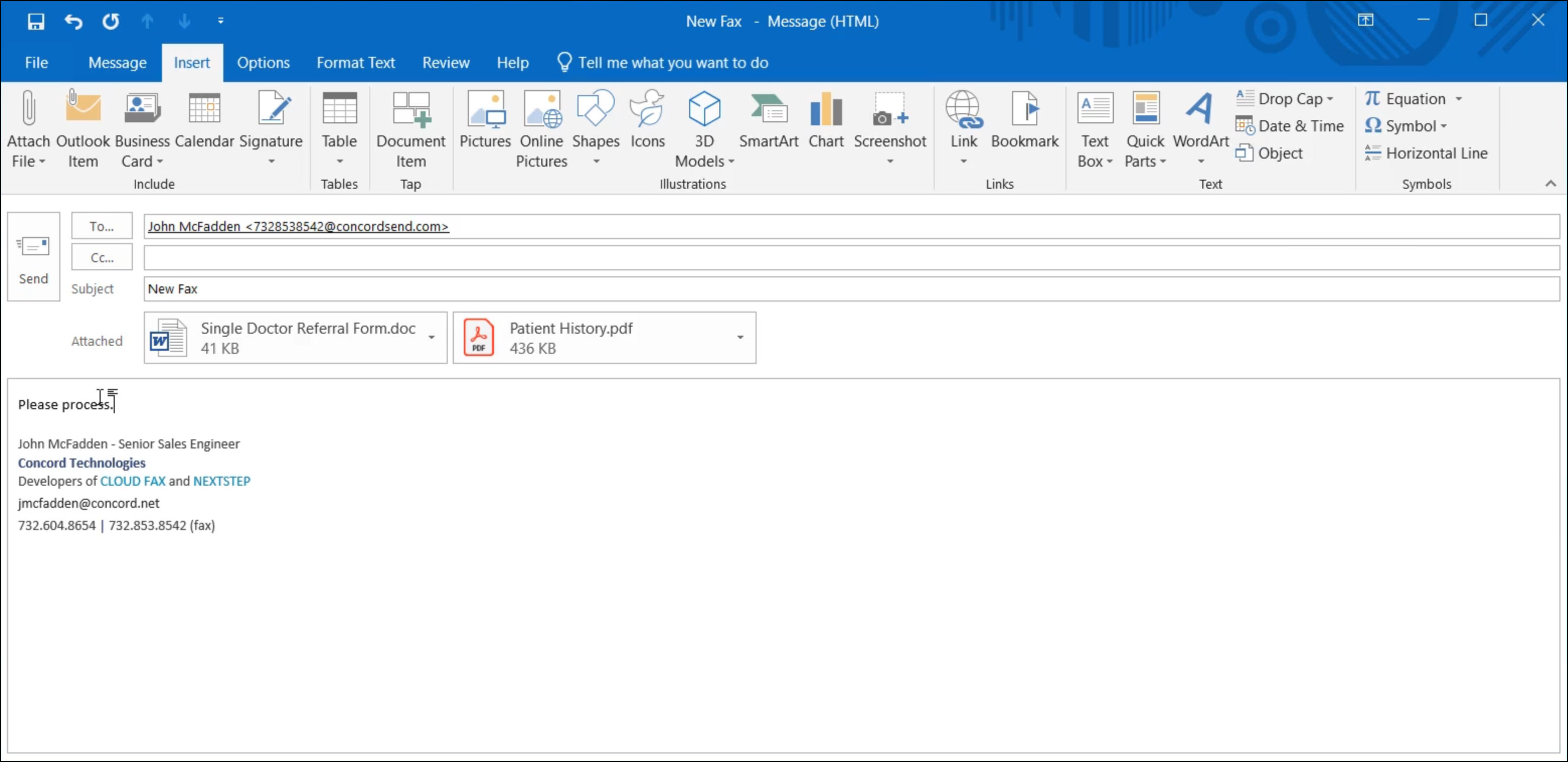 Concord Cloud Fax integrates with Microsoft Office 365 and also Microsoft Teams. The cloud faxing feature can be integrated with Microsoft Teams through its availability on Microsoft AppSource, allowing any users to send and receive faxes directly within the Microsoft Teams software.