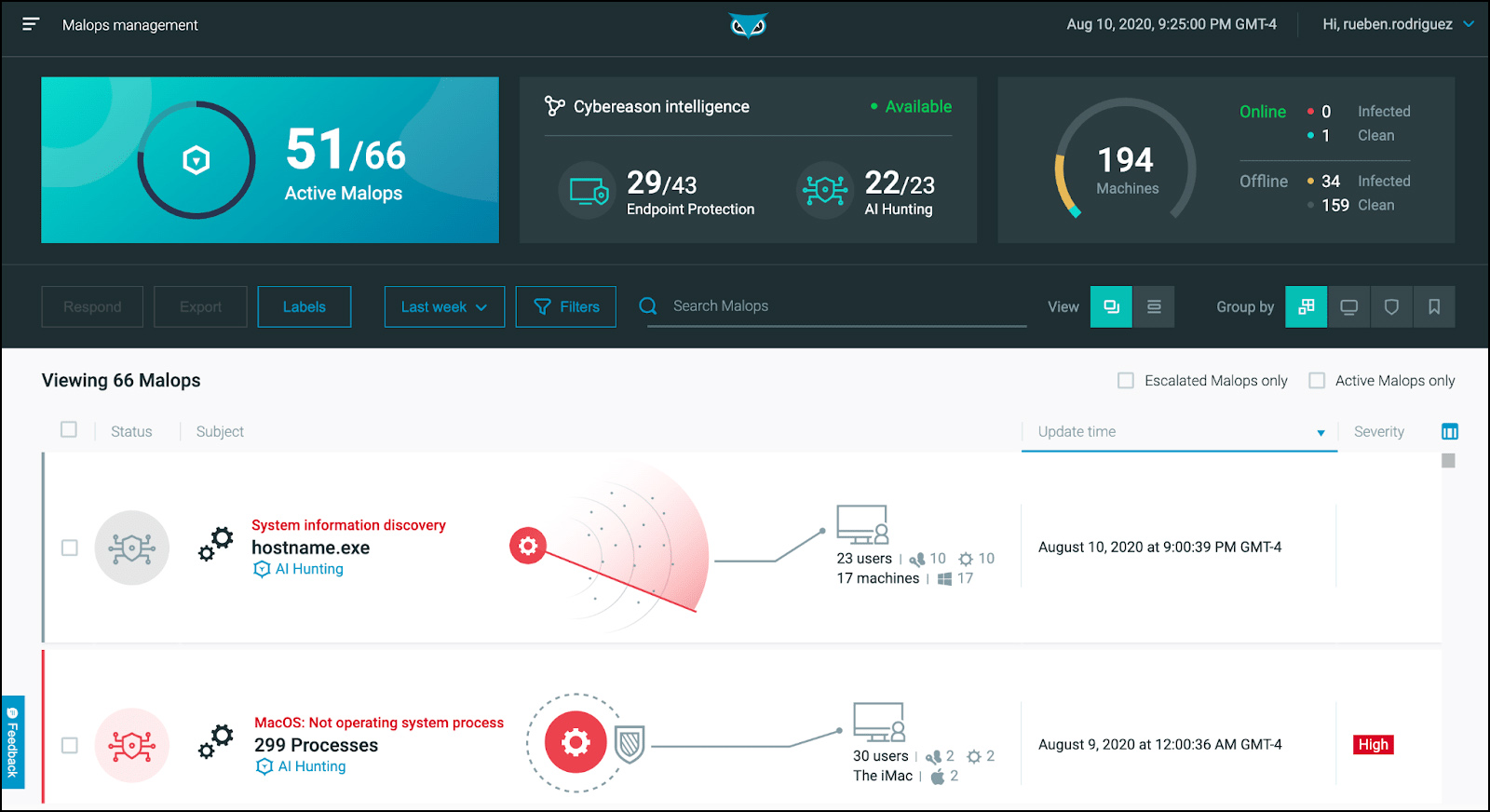 The Cybereason Defense Platform integrates detection and response mechanisms, advanced anti-virus solutions, and threat hunting initiatives, to offer a thorough analysis of all components involved in a malicious operation.