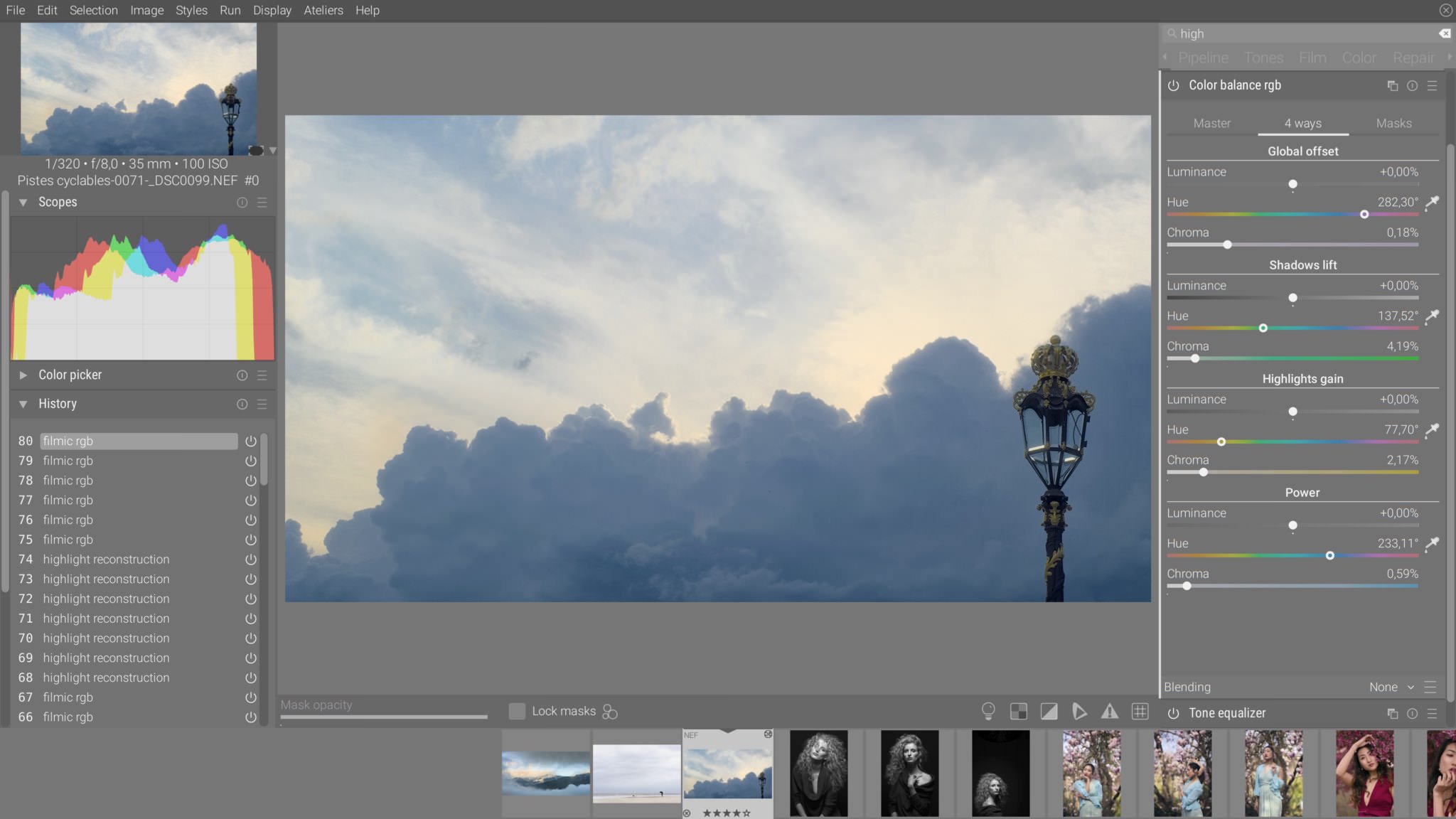 darktable is an open source photography workflow application and raw developer. A virtual lighttable and darkroom for photographers. It manages your digital negatives in a database, lets you view them through a zoomable lighttable and enables you to develop raw images and enhance them.