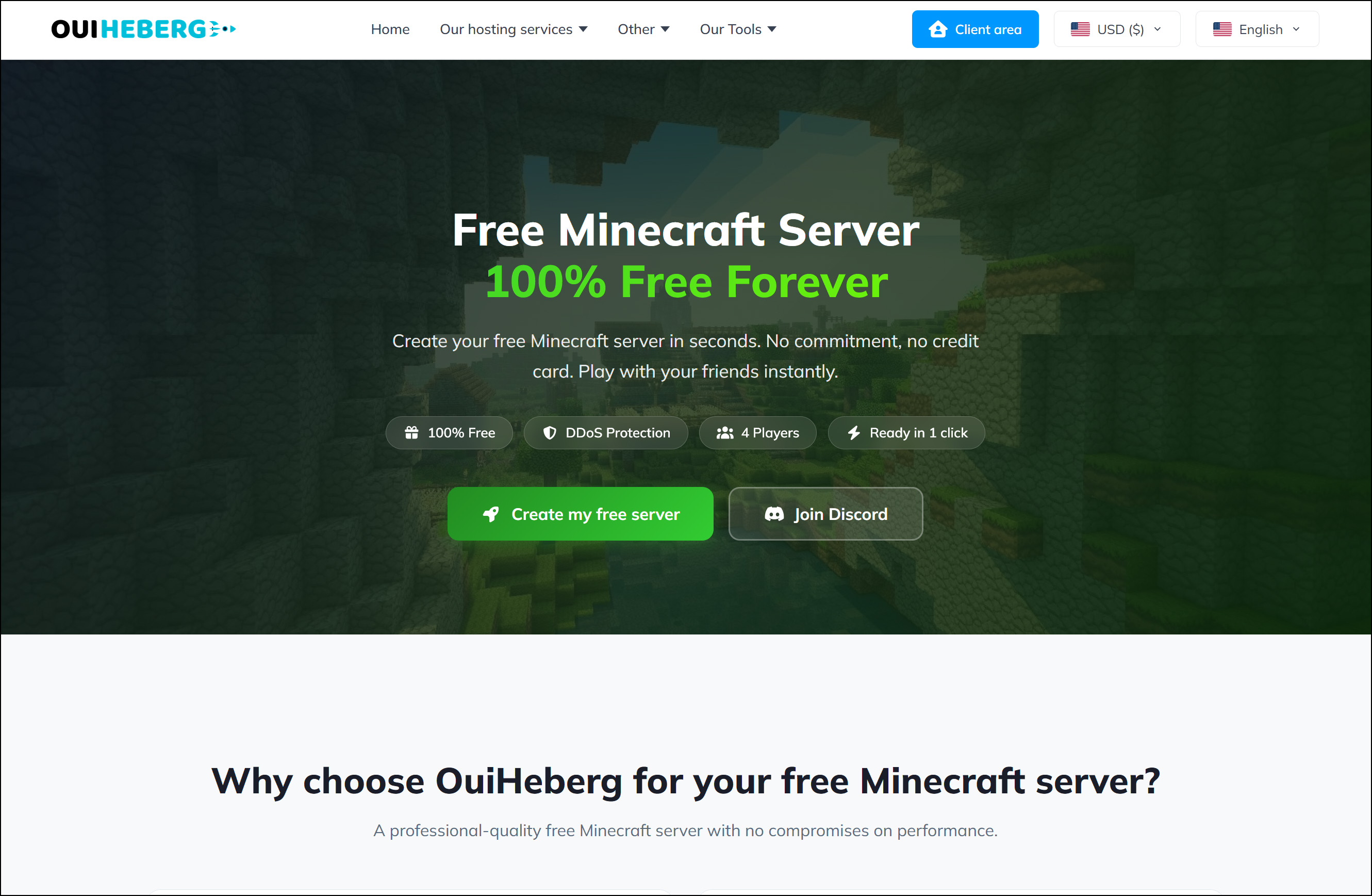 A professional-quality free Minecraft server with no compromises on performance. No payment required, ever. No credit card, no commitment. Your free Minecraft server is available immediately with no time limit.