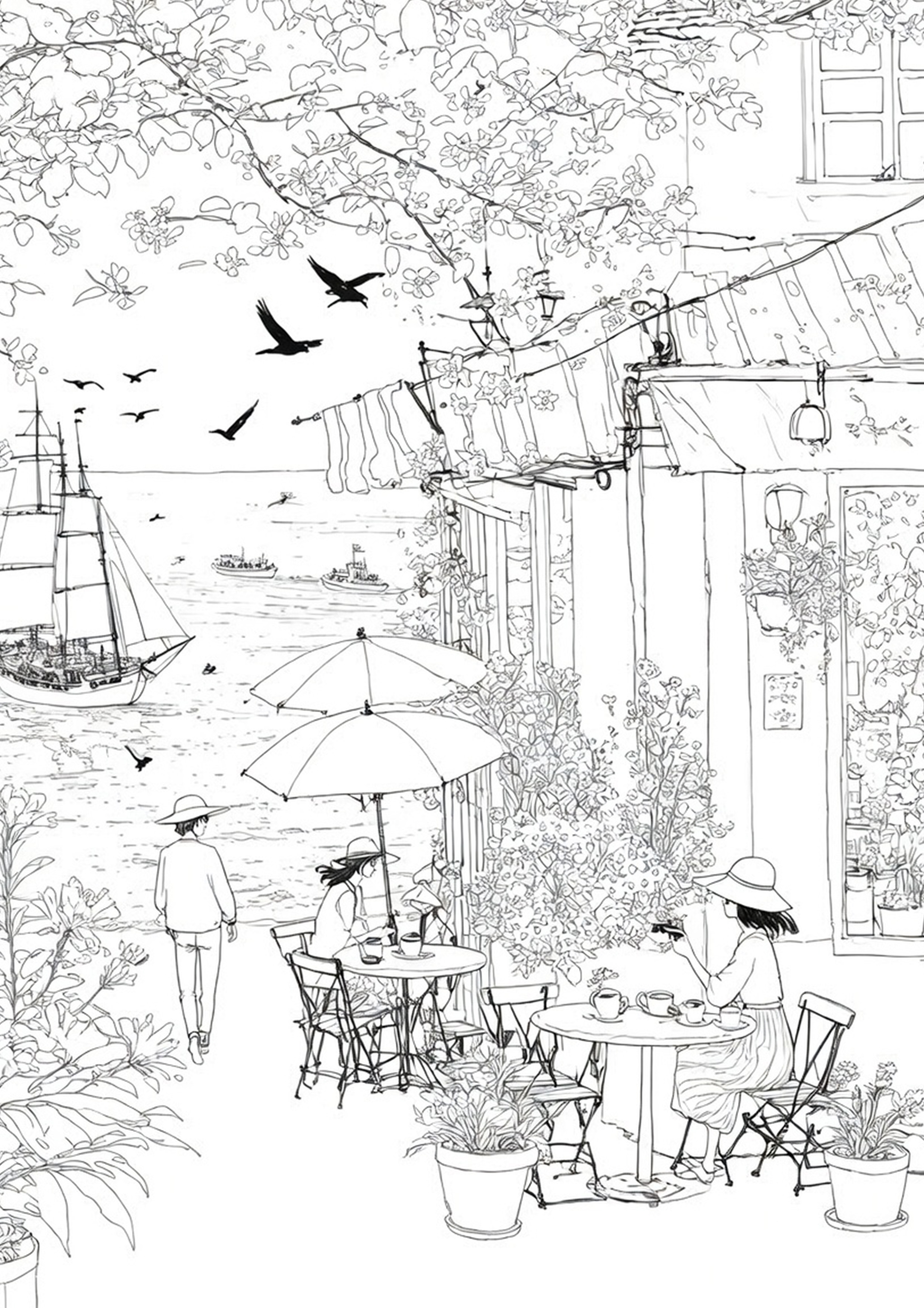 Anyway, if you are looking for some free mindfulness coloring books for adults, why pay when you can download these sheets for free, here are some of the best printable adult coloring pages. They includes themes such as Japanese shop fronts, western street views, ocean front view and more.