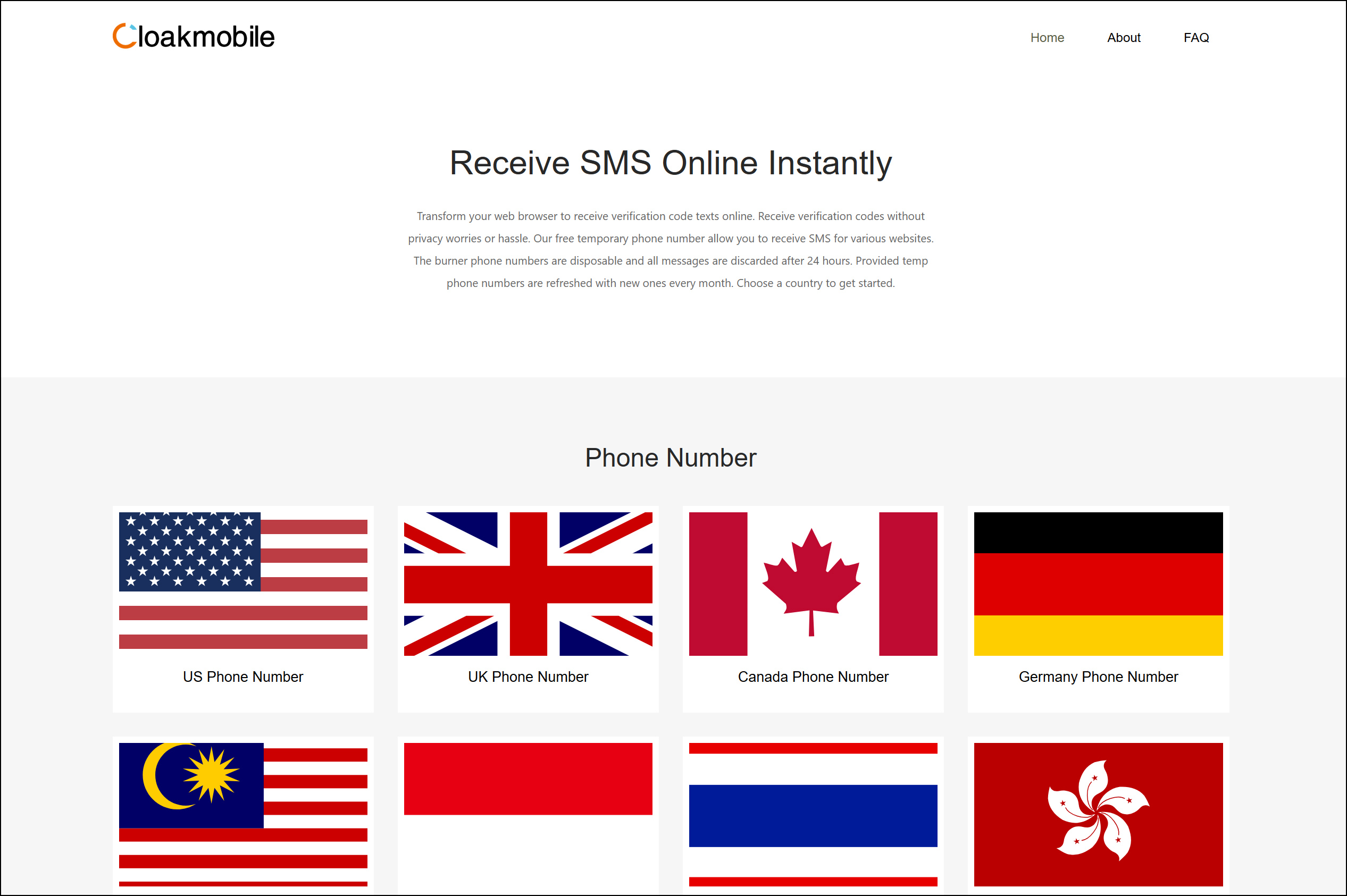 Transform your web browser to receive verification code texts online. Receive verification codes without privacy worries or hassle. Our free temporary phone number allow you to receive SMS for various websites. The burner phone numbers are disposable and all messages are discarded after 24 hours. Provided temp phone numbers are refreshed with new ones every month. Choose a country to get started.