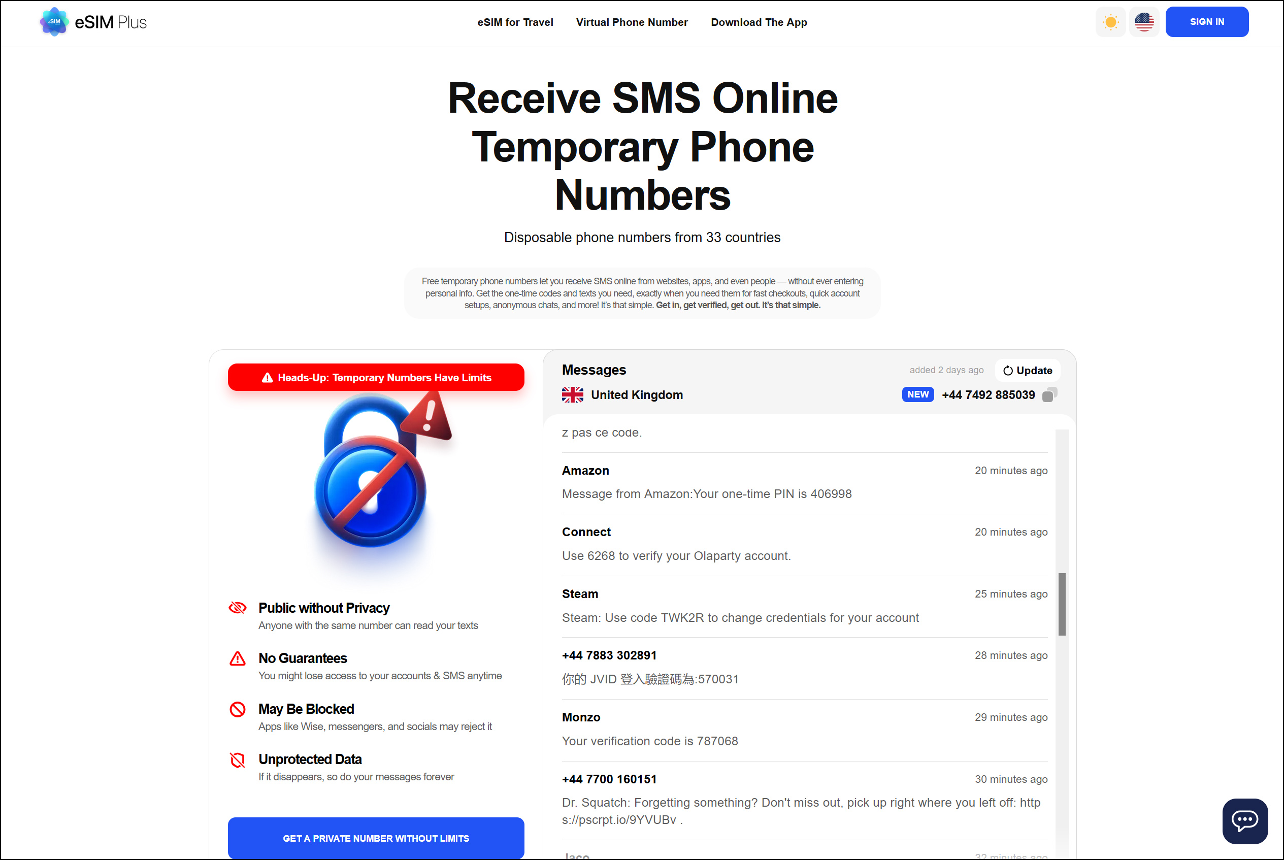 When you said “all SMS messages are public”, I remembered how my LINE verification code got snatched by someone else on a free site. After that, I switched to a virtual phone number from Portugal (+351) rare, so less likely to be spammed. The number was active 24/7, and I got the SMS right in the browser. No one else could see it, and I didn’t have to install anything.