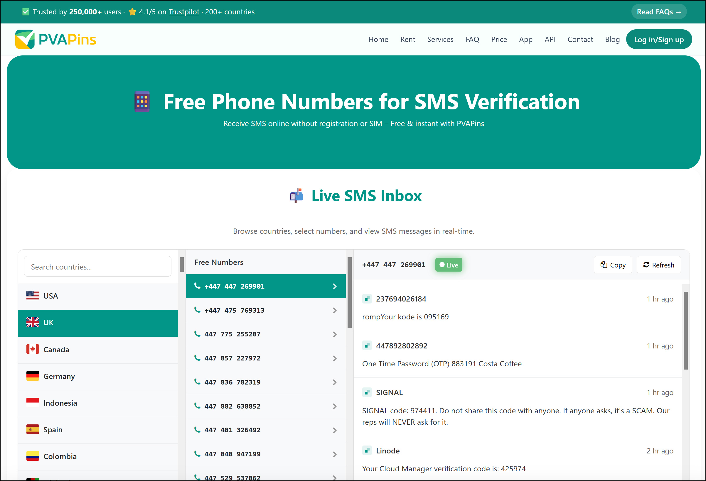 Temp Number is a website that offers disposable phone numbers for safeguarding your privacy while communicating online. No registration needed. Choose a number and read your SMS instantly.. Recently, SMS spamming is increasing drastically, so to overcome that, we had created this portal which allows you use our phone numbers and keep your personal phone numbers private so that you don’t be a victim of spamming. You are allowed to use as many phone numbers as you want and you can receive as many SMS as you want. Whenever you need a phone number for a website that requires a SMS/phone verification, our service is always available and can be used for such verification purposes.