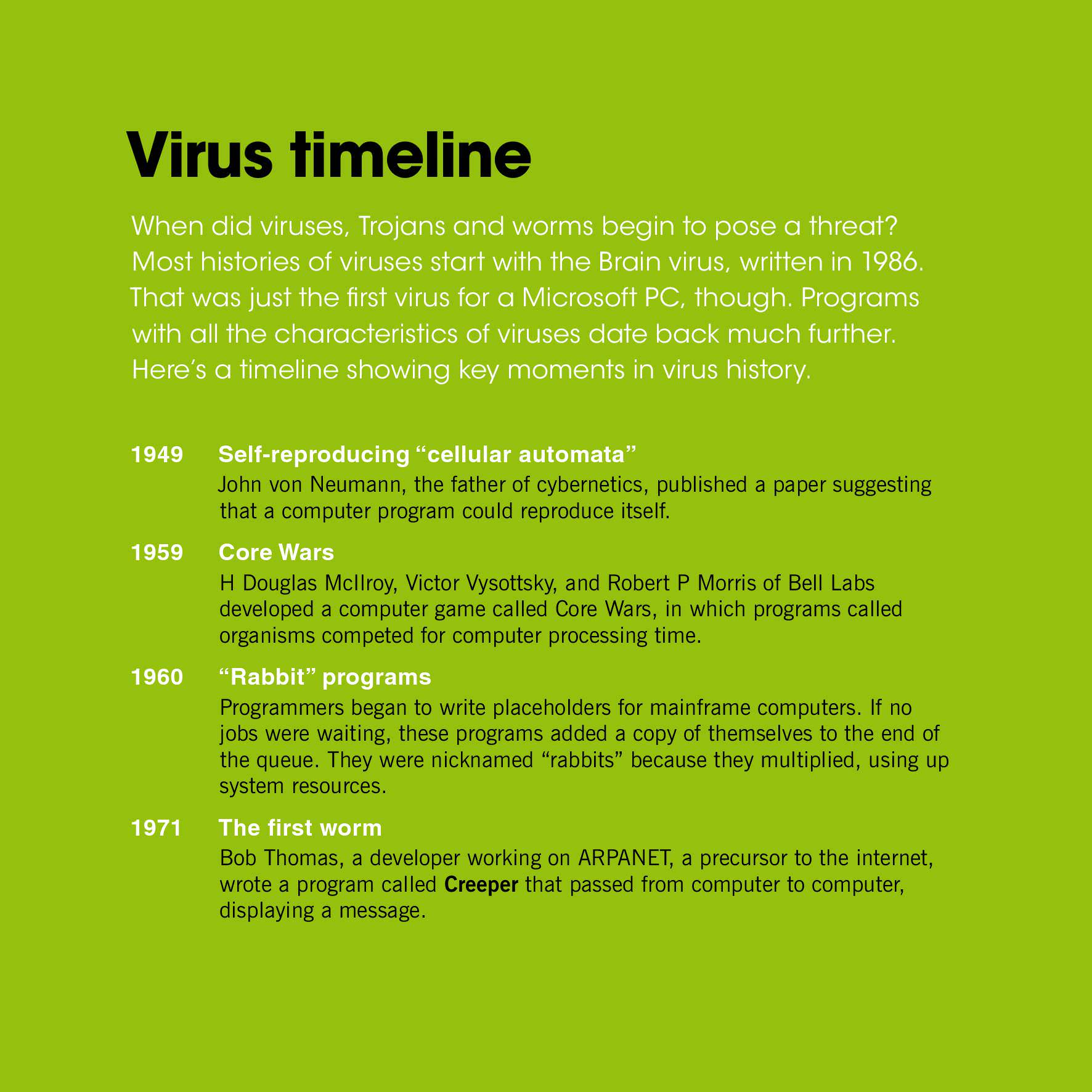 ‘Threatsaurus – The a-z of computer and data security threats’ is an encyclopedia on virus and security by Sophos Antivirus (Best in the world). It is a free guide to computer and data security threats, the history of viruses, the types of threats and many more. What makes this book interesting is the simplicity and the eye-catching comic. For those researching computer virus history and the various types of threats, this is a really good book.
